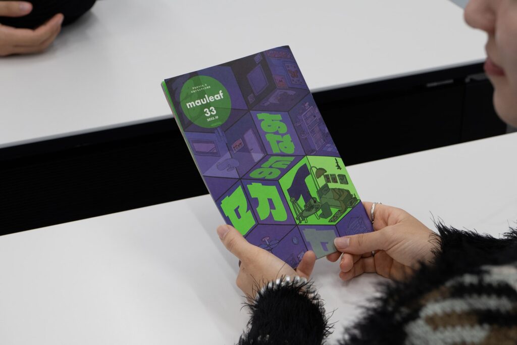 2025年10月24日に発行された『mauleaf 33号』。学科も学年もさまざまな12人の編集メンバーが、春からミーティングを重ね、テーマを決め、取材や執筆に取り組みました。普段の作品制作とは違う、大学の広報誌としての役割や視点。チームだから達成できたこと、困難だったこと。mauleaf編集部での半年間の冊子制作を、メンバーがふりかえりました。