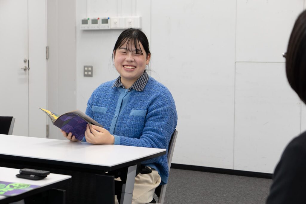 津田:私も雑誌や本が好きで、どうやってつくっているのか興味がありました。だからどちらかというとつくり方やスキルを学ぶことが目的だったのですが、活動を振り返ってみると、それ以上に大学のことを知るきっかけになったと思います。もともと私は「学校」という存在があまり好きではなくて…。高校でもそうでしたが、授業が終わったらすぐ帰るし、自分が通っている学校のことをよく知らないのが普通だったんです。それがmauleafの活動を通して大学のことを知っていった。大学に関わったという感覚を持ちましたし、「ムサビってこういう大学なんだ」という意外な気づきがありました。その変化が面白かったし、参加してよかったなと思いました。